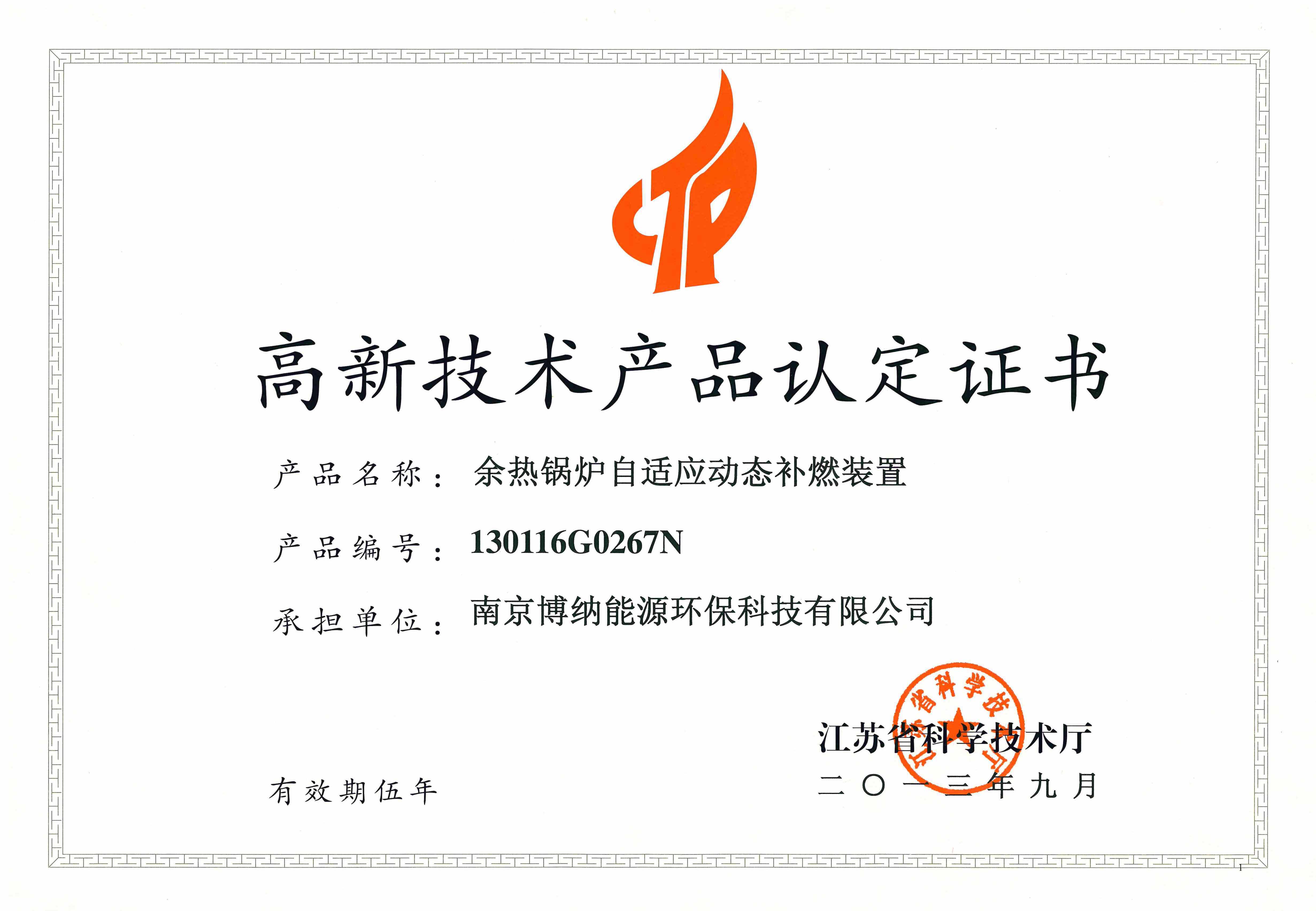 近日,由我司研發(fā)的“余熱鍋爐自適應動態(tài)補燃裝置”產(chǎn)品通過專家評審,被認定為江蘇省高新技術產(chǎn)品并獲得江蘇省科學技術廳頒發(fā)的認定證書。近幾年,我司對科技研發(fā)給予高度重視,不斷加大企業(yè)研發(fā)投入,已相繼取得一系列科技成果。“高品”的認定將激勵我司繼續(xù)加大新產(chǎn)品的開發(fā)力度,提高產(chǎn)品市場競爭力,依靠科技進步促進企業(yè)經(jīng)濟效益提高。
